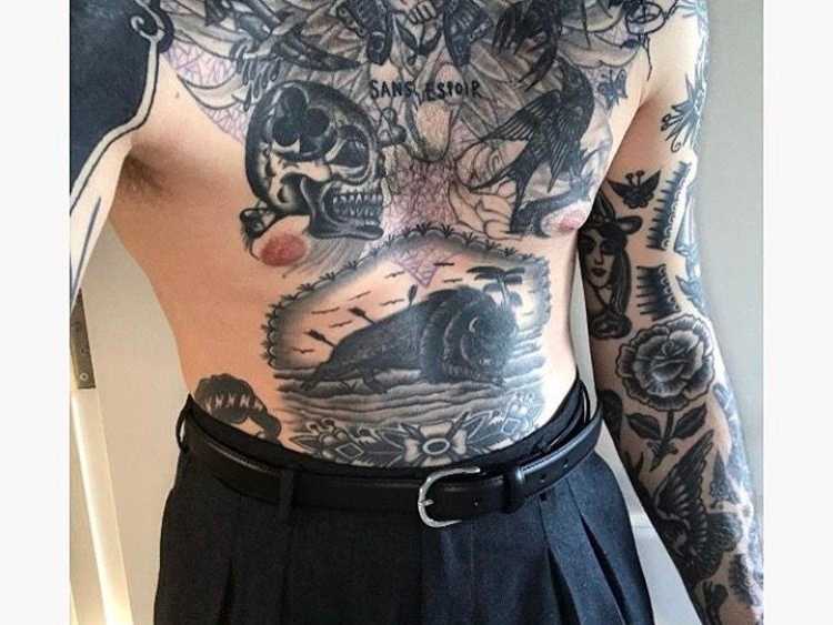 I do a lot of research. I collect tattoo books. I take a lot influence from folk art, tattooed guys and girls from the 1900’s, the originators of American traditional, that being guys like Percy Waters, Bert Grimm, Charlie Wagner, Bob Shaw, also combined with tribalism and prison tattooing composition.