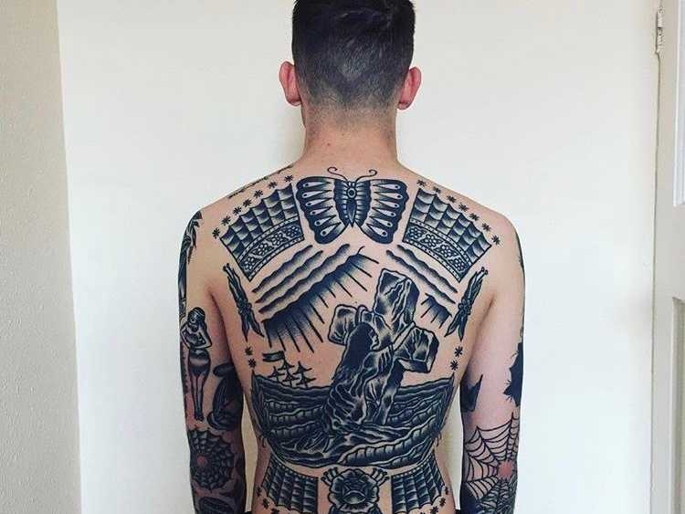 That’s so hard to answer. Honestly I would say my back piece by my main guy Henry Big, it has a lot of significance to me. It’s a huge step in anyone’s tattoo ‘journey’, as cringey as that sounds, to get your whole back tattooed. It’s a lot of hours, blood, sweat, pain of course… a huge area to cover. But once it’s finished it’s an incredible feeling to have, knowing you have your whole back tattooed is incredible. Not a lot of people do and I can see why… it hurts. I love it, the image is the rock of ages. It’s bold, it’s black, it’s fucking tattooing to me.